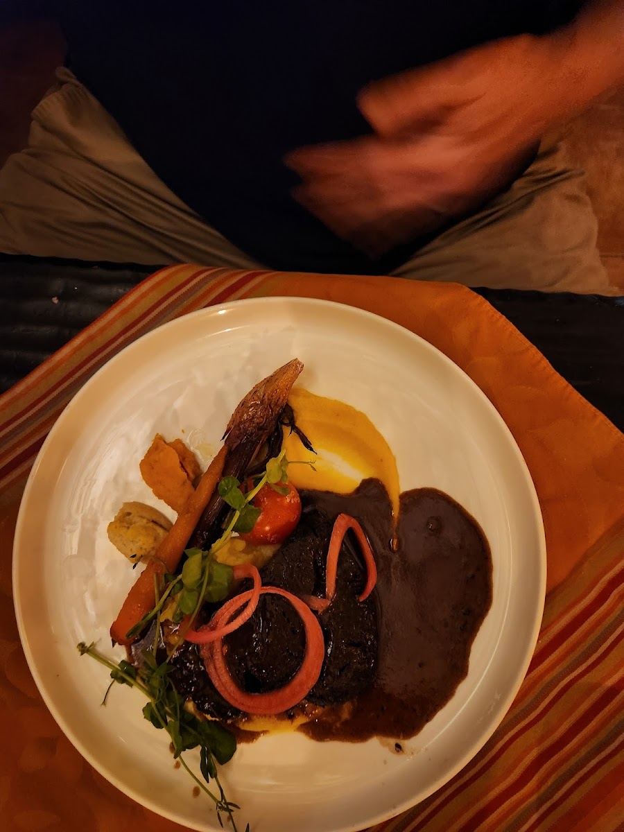 For those seeking a more indulgent option, the Slow Roasted Beef is a standout. This dish features beef slow-cooked to perfection, ensuring a melt-in-your-mouth experience. To finish your meal on a sweet note, the Tarte Citron is a refreshing and tangy dessert that perfectly balances the meal's richness.